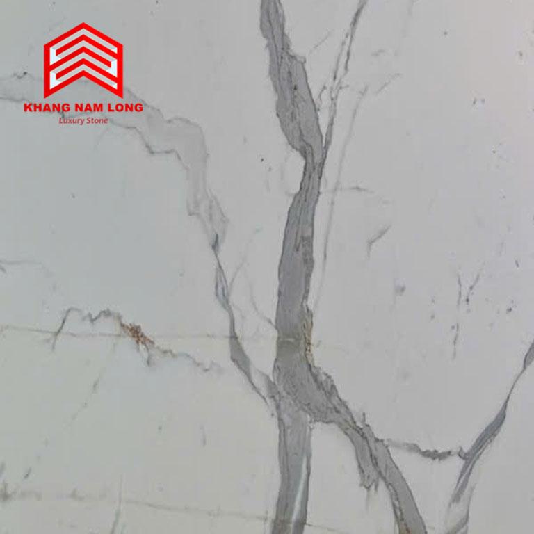 Calacatta White là một loại đá cẩm thạch trắng có vẻ đẹp long lanh với những đường vân xám trên một nền đá trắng ngọc ngà. Một vật liệu tuyệt đẹp sẽ tạo điểm nhấn trên sàn nhà, tường hoặc mặt bàn. Các đường vân màu xám nổi bật tạo điểm nhấn thu hút mọi ánh nhìn ở bất cứ nơi nào được lắp đặt, dù là trên sàn hay trên tường. Một loại đá thiết yếu, độc đáo, hoàn hảo cho nhà bếp và phòng tắm, nơi tìm kiếm vẻ ngoài tinh khiết và sạch sẽ nhưng cũng rất thanh lịch trong các loại không gian khác. Hơn nữa, Calacatta white là một loại đá cẩm thạch cứng và đàn hồi.